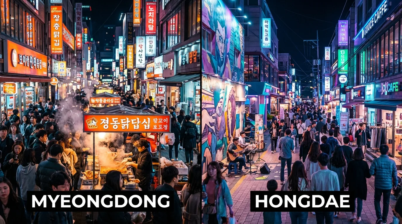 — Why does Myeongdong feel more tourist-shaped while Hongdae feels more stay-shaped